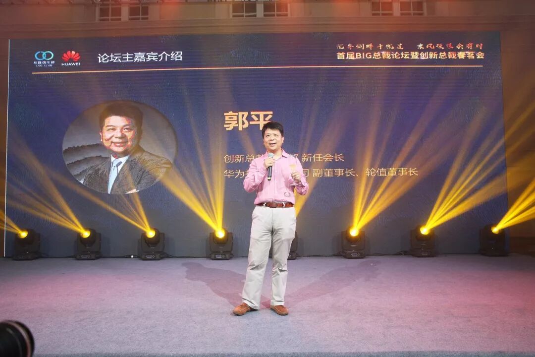 ▲总裁俱乐部荣誉会长、华为轮值董事长郭平