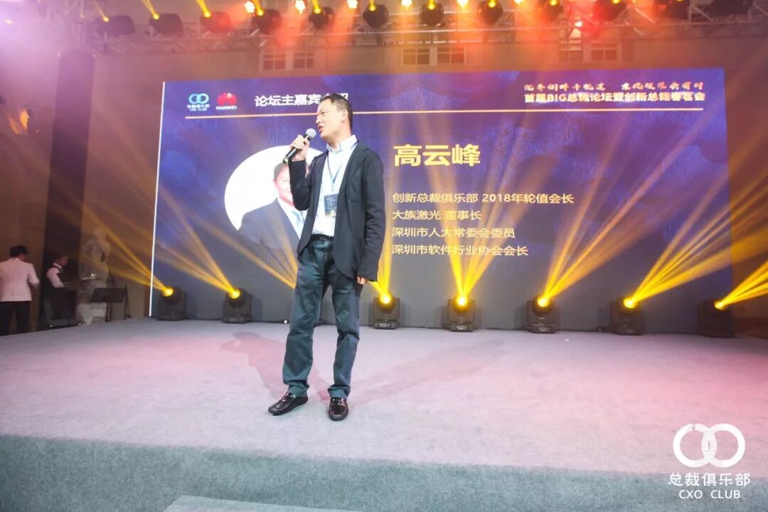 郭平总注重激励,厉伟总强调学习,话筒传给高云峰总,他是大族激光科技产业集团股份有限公司董事长、总裁俱乐部2018年轮值会长,话题走向进一步深度。