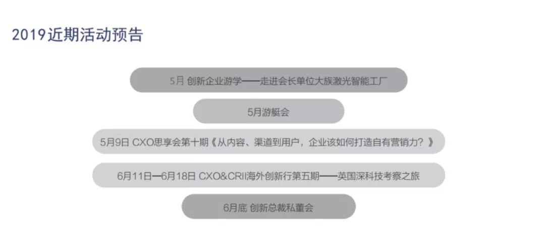癖好就是痴,用情至深不顾世俗,正如我们的会员企业家们,他们在自身行业领域执着的探索着,在创新领域不断突破着。而瑕疵就是自由、真实。我们都有一杯酒,致敬自己,致敬老友。创新总裁俱乐部2019春茗会交流晚宴在时光的感动中圆满结束,今夜须轻醉,共度此良辰。觥筹交错,尽显思想碰撞。让我们携手共同相聚明年!