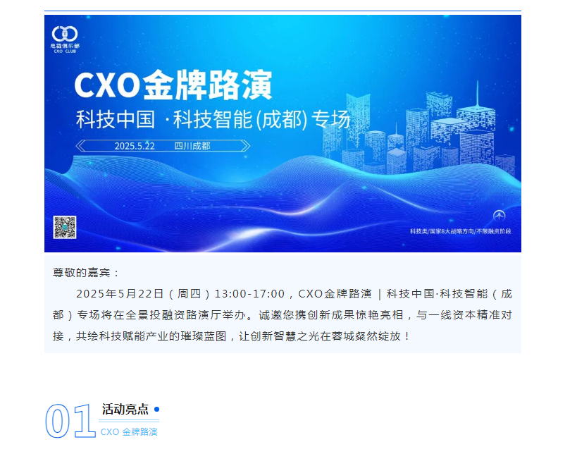 CXO金牌路演 | 提前报名享优先对接!科技中国·科技智能(成都)专场