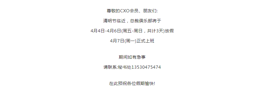 CXOCLUB秘书处清明节放假工作安排!