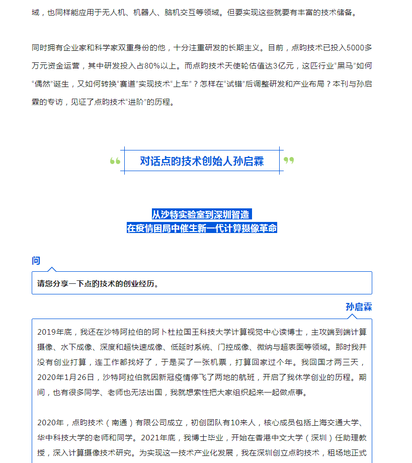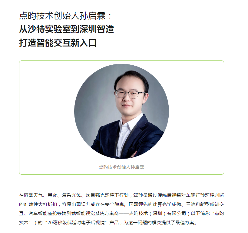 CXO专访荐读 | 点昀技术创始人孙启霖:从沙特实验室到深圳智造 打造智能交互新入口