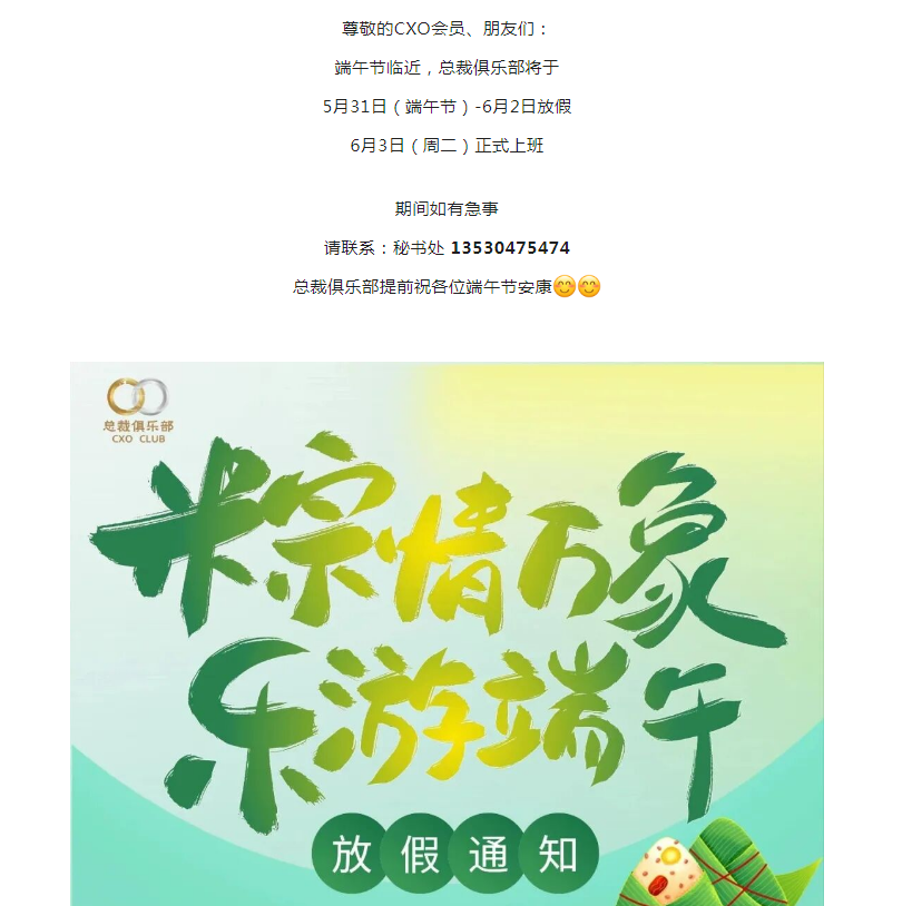 CXOCLUB秘书处端午节放假工作安排!